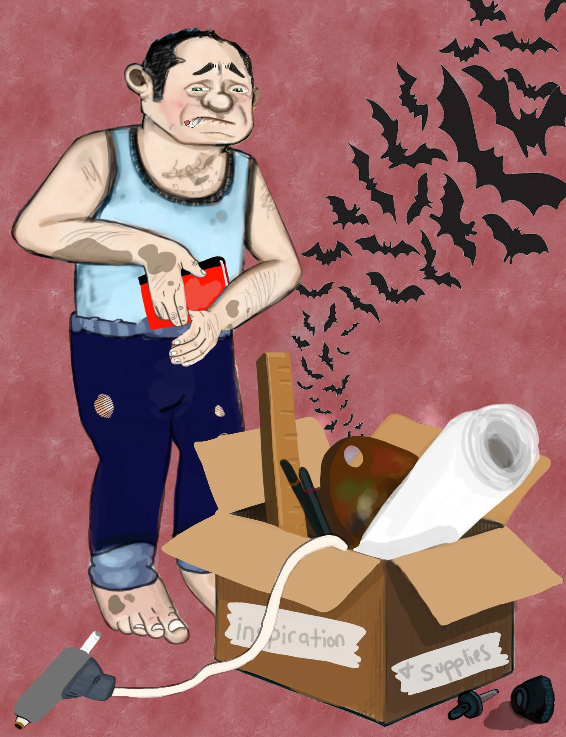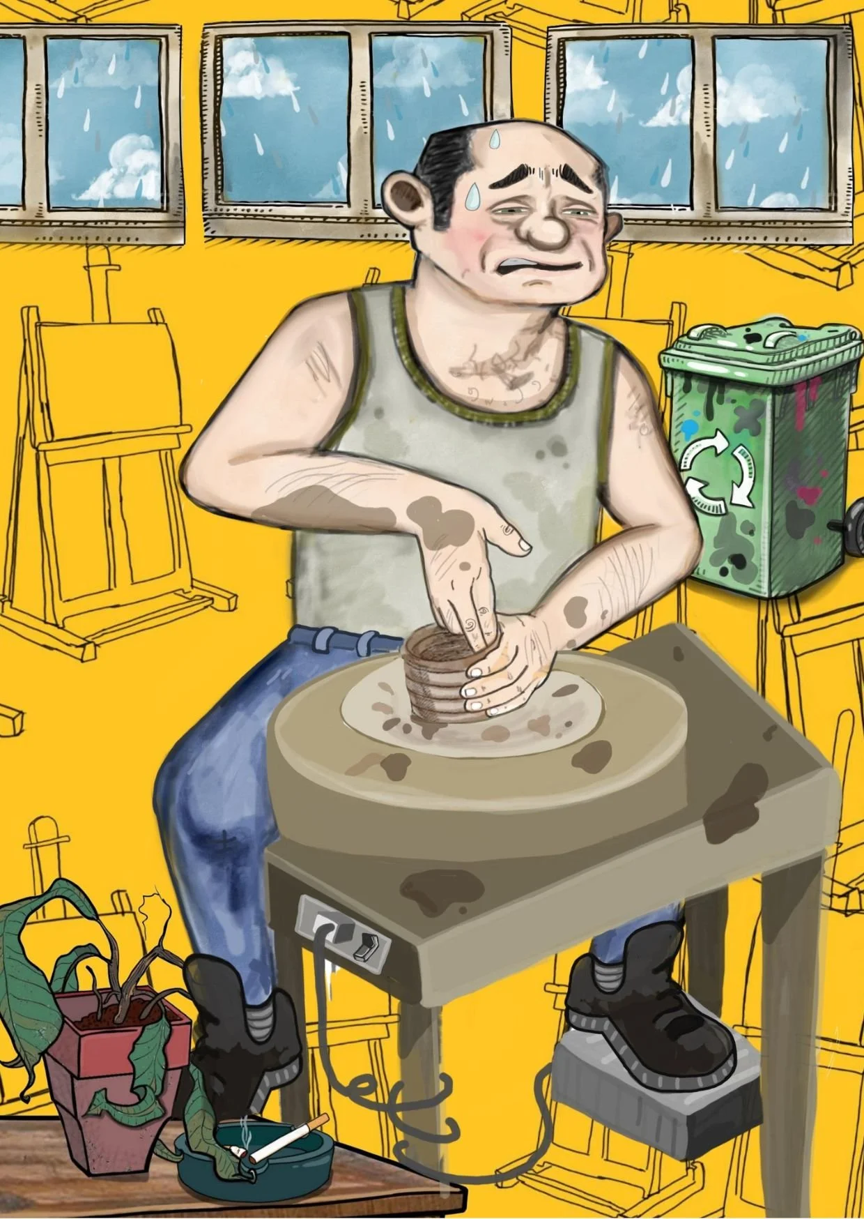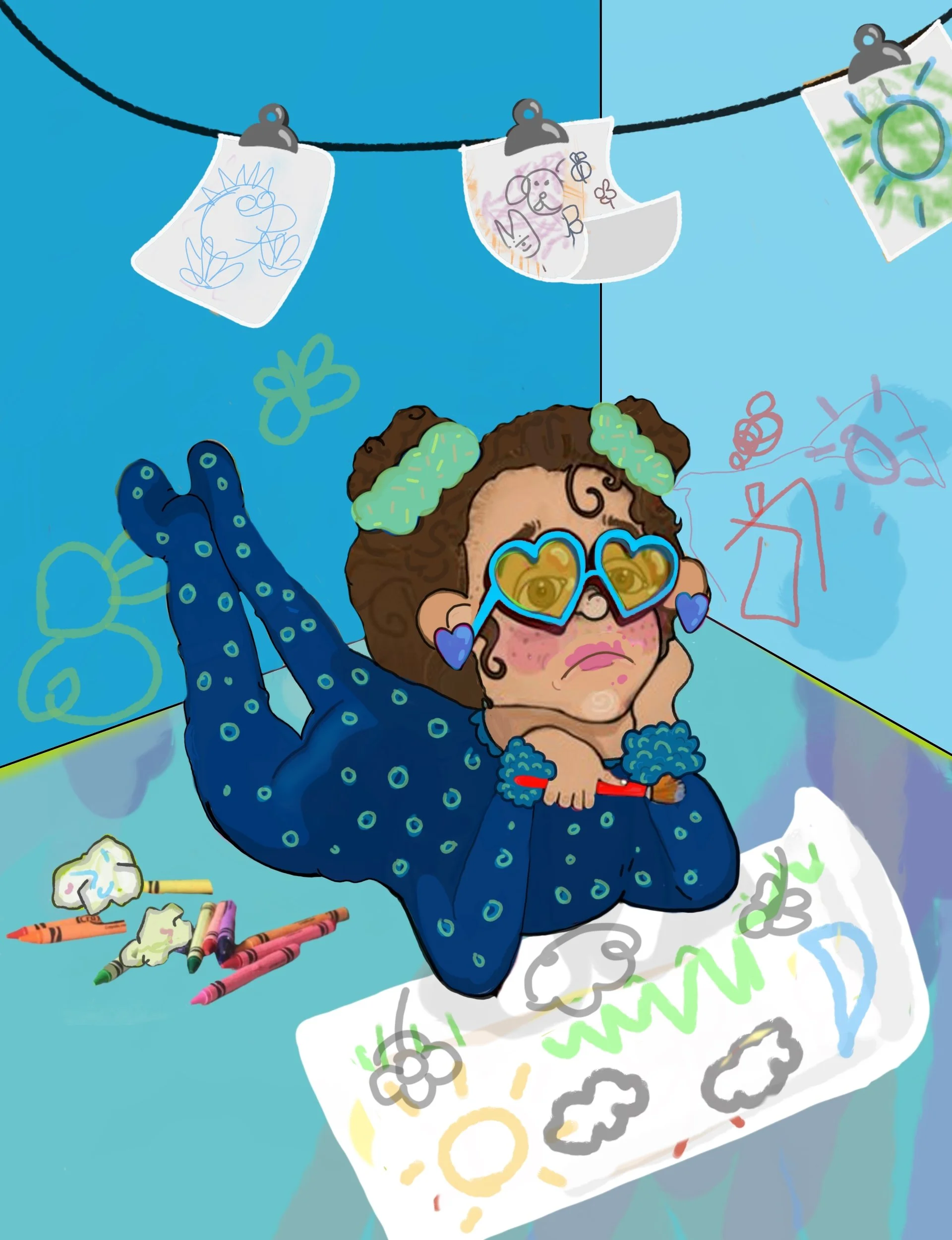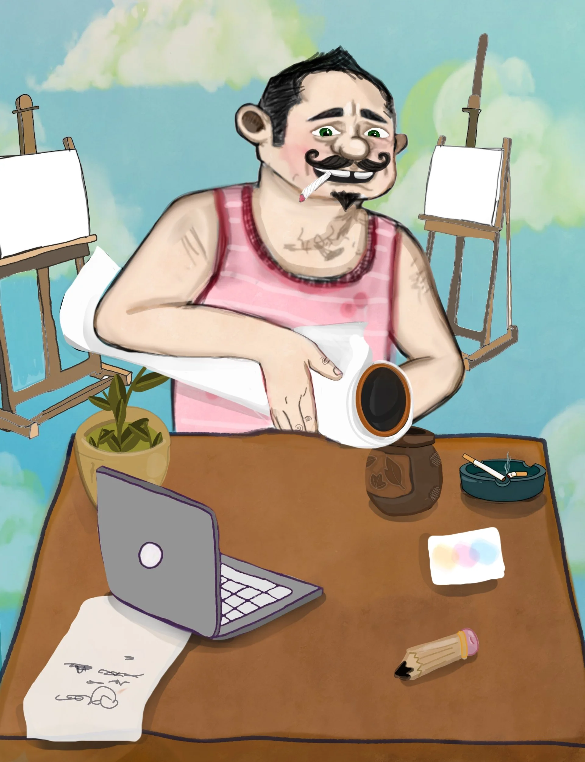 Alessandra Cupani’s digital illustrations in the Life of an Artist series explore the inner world of creative individuals, using repetitive elements to bring a sense of cohesion throughout the works. While the characters often reflect complex or conflicted states of mind, the overall style remains lighthearted and approachable. This contrast between mood and visual tone creates an engaging narrative, offering a playful yet thought-provoking glimpse into the daily life of an artist.